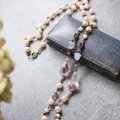 そんな優美なロングネックレスは、美しいだけでなく、いろいろな装いに合わせやすいデザインとなっています。シンプルスタイル、ナチュラルスタイル、アンティークスタイル…