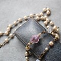 ライラック色の大人ロマンティック。フレンチアンティークstyle 貝パールとヴィンテージガラスのロングネックレス