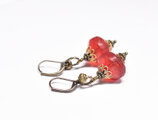 真っ赤な算盤型アンティークボヘミアビーズと隠しブルービーズなどを繋いだピアスです。
