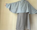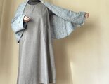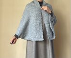 縁編みにボタンホールをしていますので、袖口をとめるとボレロに、脇をとめるとポケット付きのカーディガンみたいに、ぐるんと巻くとボリュームいっぱいのストールにと 3wayで楽しめます。