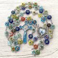 なるべくきれいなビーズを選んでつなげていますが多少の歪さ、花もきれいな形ばかりではありません。画像からもすべてが同じ形ではないことがおわかりいただけるかと思いますが完璧なビーズのロザリオをお求めの方には向いていないと思います。