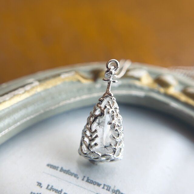 繊細な銀線の透かし装飾の間に、チラチラと瞬く可愛い星々をお楽しみください。