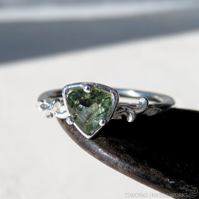 パキスタン産・ルチルペリドット (ルドウィジャイト イン ペリドット)を使用したリング。
