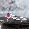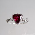 独特のピンクに輝くガーネットを、ボタニカルな細身のリングにセットしました。