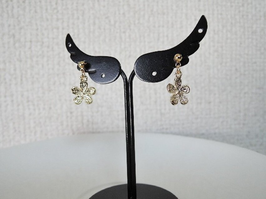 金属チャーム(モチーフミニレースフラワー)、ステンレスピアス(キャッチ付き)、丸カン、シリコンキャッチ(1ペア)