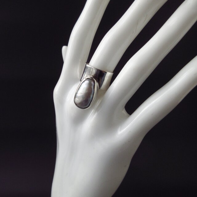 ホワイトグレーのバロックパールを使ったシルバーリング。