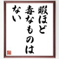名言「暇ほど毒なものはない」を書道家が毛筆書道で色紙に直筆、額に入れてお届けします。当店では挑戦、努力、成功、幸福、感謝、成長、家族、仕事、自己啓発など様々なテーマから人生の糧となる名言、四字熟語、諺、故事成語、格言を厳選、毛筆で直筆、お届けしています。これまで、6,000名以上の方からご注文いただき、お届けしてきました。