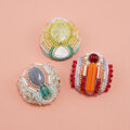 そのビーズを引き立てるように隙間なく刺繍をすると、カラフルでにぎやかで、まるでおしゃべりをしているように仕上がります。