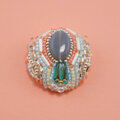 とても軽いおゃべりなブローチ36 ビーズ刺繍のブローチ グレー ピンク ブルー