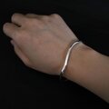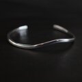 中央に加えたゆるやかな“うねり”が、光を柔らかく反射し、シンプルながら印象的な表情を生み出すバングルです。