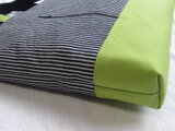 ヒッコリーデニムときれい色の帆布を組み合わせました。さわやかでかっこいい配色のレッスンバッグです。