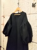 wintersale!コットンウールブラックたっぷりパフスリーブワンピース