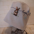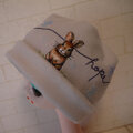圧縮ウールニット生地で作ったニット帽(雪とうさぎちゃん)