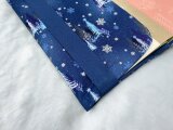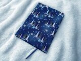 人里離れた深い森に、雪が舞い始めました。今年も美しい季節がやってきたようです。静かに世界を覆いつくす雪を愛でながら、読書を楽しみたい、そんな柄の布で、A5サイズのブックカバーを作りました。
