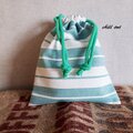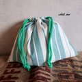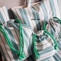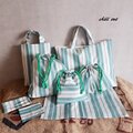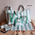 グリーンのボーダー柄の8点セットで入園バッグが出来上がりました!