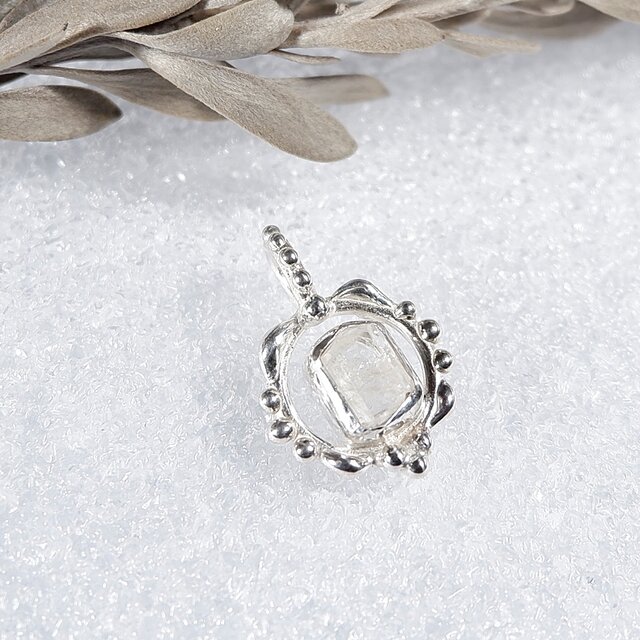 フェナカイト(フェナサイト)の原石を可愛らしいデザインペンダントに仕上げました。