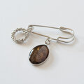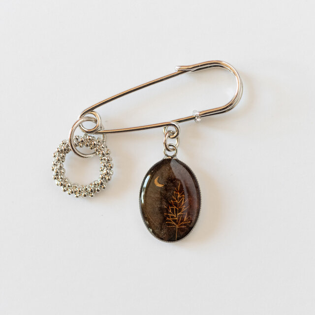 手描きのオリジナルイラストをレジンで閉じ込めたピンブローチです。