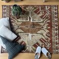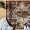 106×122 ウール ブラウン パッチワーク アクセントトルコヴィンテージラグ