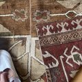 ヴィンテージラグは古い手織物のため使用感や糸のほつれ、補修跡、補強跡、ヨレやシミ、色むら、毛羽立ちなども見られる場合がございます。ヴィンテージラグの魅力としてご理解いただき、良いと思える方にご購入いただけると幸いです。