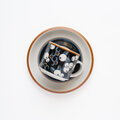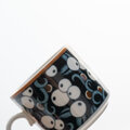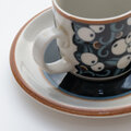 カップの周囲には、白いベリーが実るフィンランドの神秘的な森の様子が描かれています。黒、白、青、茶の4色がリズミカルに散りばめられており、森の中のファンタジーが独自の世界観で表現されています。