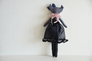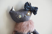 フランスの高級ツイードのリボン、首元にはフワフワのファーのお気に入りのマフラー...シルクのジャンプスーツにブラックのチュチュでコーディネイトをするオシャレで軽やかなネコの女の子のイメージから誕生しました♪