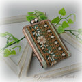 クラシックな雰囲気のインド刺繍リボンを、パールラメの入った白い革に合わせてみました。