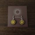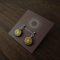まるで魔法陣のように糸が重なり合う、黄色の絹糸ピアス。