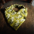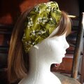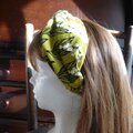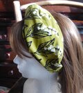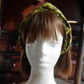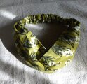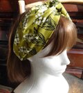 黄色地のスズラン柄の細畝コーデュロイ地のクロスヘアバンドです。厚めの生地なのでボリュームが出ています。