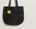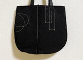 黒色の帆布を切りっぱなしでパッチワークしています。