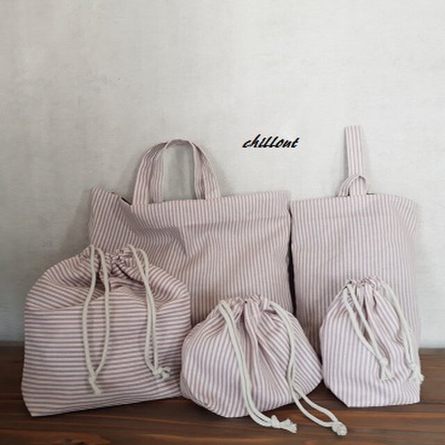 ストライプ:ソフトリネンの入園バッグ5点セットが出来上がりました!