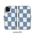 市松模様 和柄 和風 総柄 イラスト 全機種対応スマホケース 手帳型 カード収納 NLFT-BKCS-04w