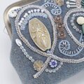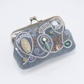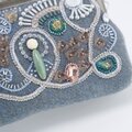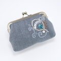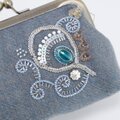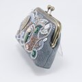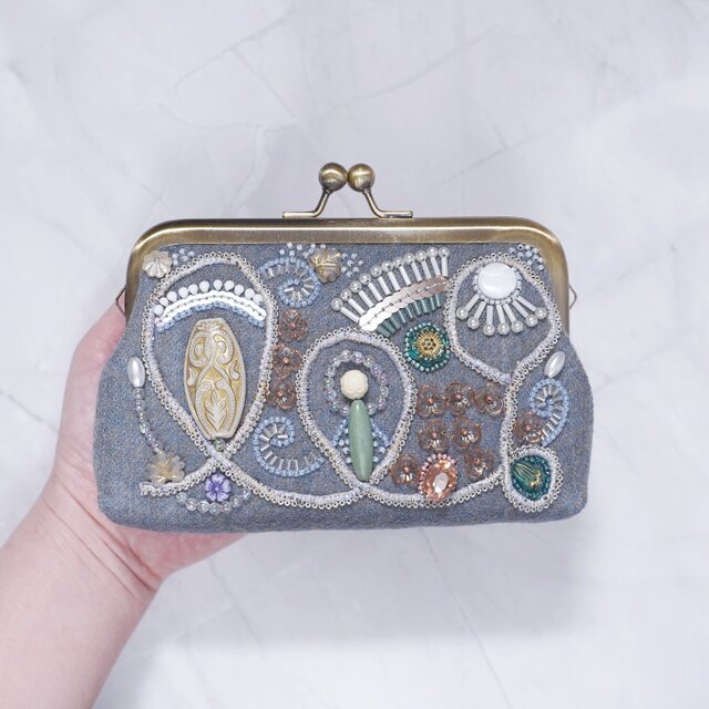 ビーズ刺繍のがま口ポーチ マチ付き ブルーグレー