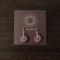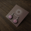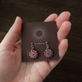 まるで魔法陣のように糸が重なり合う、赤紫の絹糸ピアス。