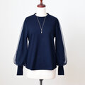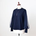 ふわっと柔らかいソフトチュールを重ねた、シンプルながら華やかなデザインのバルーンスリーブプルオーバー。