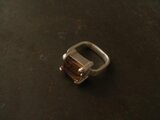 そのアメトリンを使って、スクエアな縦爪のリングに仕上げました。