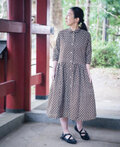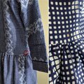 浴衣ブラウスワンピース格子と吉原繋ぎ柄(Mサイズ)
