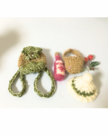 • 手編みのカゴバッグ: 中には羊毛フェルトのロゼワインと、色鮮やかな赤い木の実を詰め込みました。