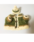 • ノルディック柄カーディガン&ニット帽: 冬の景色に映えるグリーンを基調とした、温もり溢れる手編みセット。