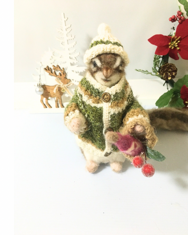 冬の澄んだ空気の中、おめかししてピクニックに出かけるシマリスさんをイメージして制作しました。