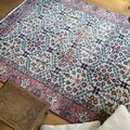 ヴィンテージラグは古い手織物のため使用感や糸のほつれ、補修跡、補強跡、ヨレやシミ、色むら、毛羽立ちなども見られる場合がございます。ヴィンテージラグの魅力としてご理解いただき、良いと思える方にご購入いただけると幸いです。