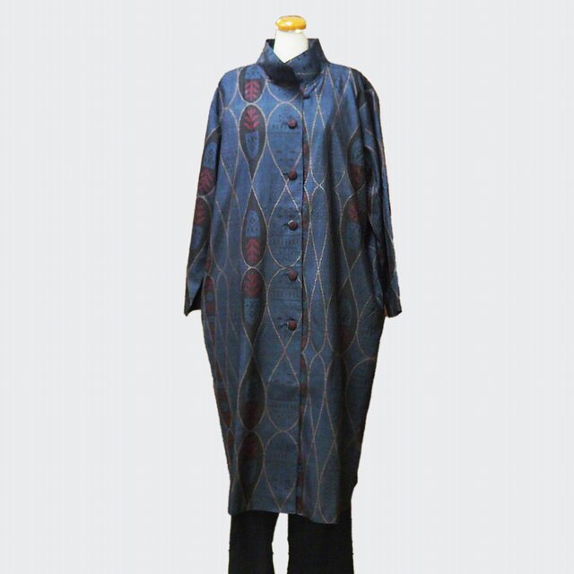 0001 着物リメイク 大島紬のロングコート / kimono vintage cloth japanese silk coat