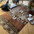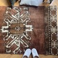 ヴィンテージラグは古い手織物のため使用感や糸のほつれ、補修跡、補強跡、ヨレやシミ、色むら、毛羽立ちなども見られる場合がございます。ヴィンテージラグの魅力としてご理解いただき、良いと思える方にご購入いただけると幸いです。
