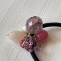 ヘアゴム♡チェコガラス×ピンクアベンチュリン×コットンパール《1点物》