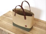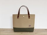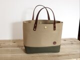 レザーハンドル 帆布トートバッグ マッシュルーム×オリーブ