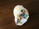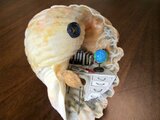 海で拾った貝がらの内側に、ミニチュアのデスクを設置しました。