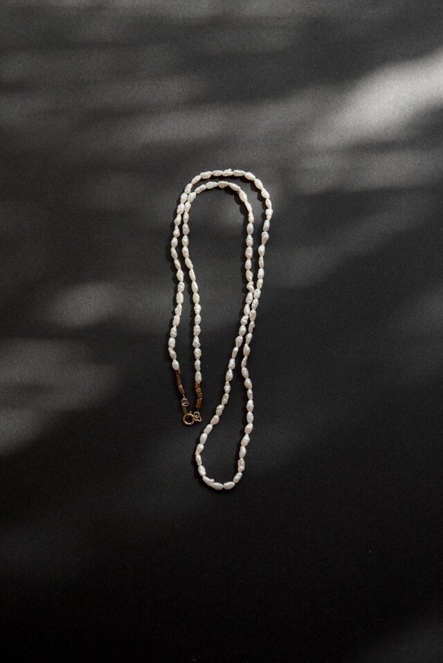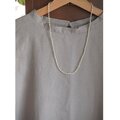 こちらはアンティークの淡水ケシパールです。極小のビーズに開けられた小さな穴にドイツ製絹糸を丁寧に通して仕上げております。ケシパールは無核真珠のため形が統一しておらず、欠け、傷等がありますが細やかに光を反射するため存在感があります。小さなケシの実に似てることからこの名が付けられたようです。冠婚葬祭などのフォーマルで使用する丸いパールとは異なりますが、パールならではの気品溢れる艶やかな質感や光沢には魅了されます。