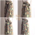 巻きスカートの紐は浴衣の半幅帯の結び方を取り入れています。
