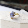夕暮れの空にプリズムが輝くような、しっとりとしたブルーが美しいタンザナイト。