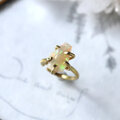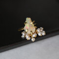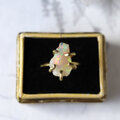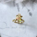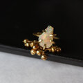 クリーム色の中に赤・オレンジ・黄・緑・青のオーロラのような遊色がゆらゆらと輝くオパール。ナチュラルなドロップ型が印象的。ころんと存在感のある原石を真鍮の爪でシンプルに留め、ベビーリングのようなイヤーカフにしました。