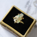 ゆらゆらと光る虹色の光(遊色)が美しいオパール。実は遊色効果が見られる石は一部で「プレシャスオパール」、遊色を持たず石の地の色そのままのものを「コモンオパール」と呼んでいます。